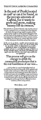 ![]() THE HYDROCARBON COMMONSConcept: A proposal to create a Hydrocarbon Commons.It is designed to be read in an poetic voice, like a proclamation, and is influenced by 'Warren James' the Freeminer who distributed handbills when struggling against enclosure in the Forest of Dean in 1831. The text starts by asking 'Is the soul of Profit located in coal? or can it be found in the private interests of Capital, for it wants to grow and grow, making money for its owners..' Otherwise who has the agency to Leave it in the Ground? The government won't as coal is too profitable. The corporations won't - ditto. Which is why NUMs proposals are interesting - UK coal (created using deep mining rather than the more horrific open cast) which will also save huge amounts of transport emmissions from shipping coal across the world, burned using decentralised CHP stations (they burn 95% efficiency as opposed to Kingsnorth which is 45%). It is obviously problematic (do people really want to work down mines still? isn't it just delaying a transition to green energy? is Carbon Capture really viable? Download: 2X posters A3 PDF |