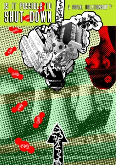 ![]() IS IT POSSIBLE TO SHUTDOWN A SOCIAL RELATIONSHIP?Concept: Next poster in the 'social relationship' series. Looking at the possiblities for the expansion of climate change campaigns 'against coal' into 'against commodity production'. Inspired by the Petroleum Commons and Just Transition, and online debates between red and green. The red colour symbolises the enemy (CO2, the police) with the twist being that the policeman in the poster is actually a miner, taken from the classic photo during the 84 strike. The idea is that by linking things together we won't make enemies of workers and substances and can then target systems and economies (social relationships). |